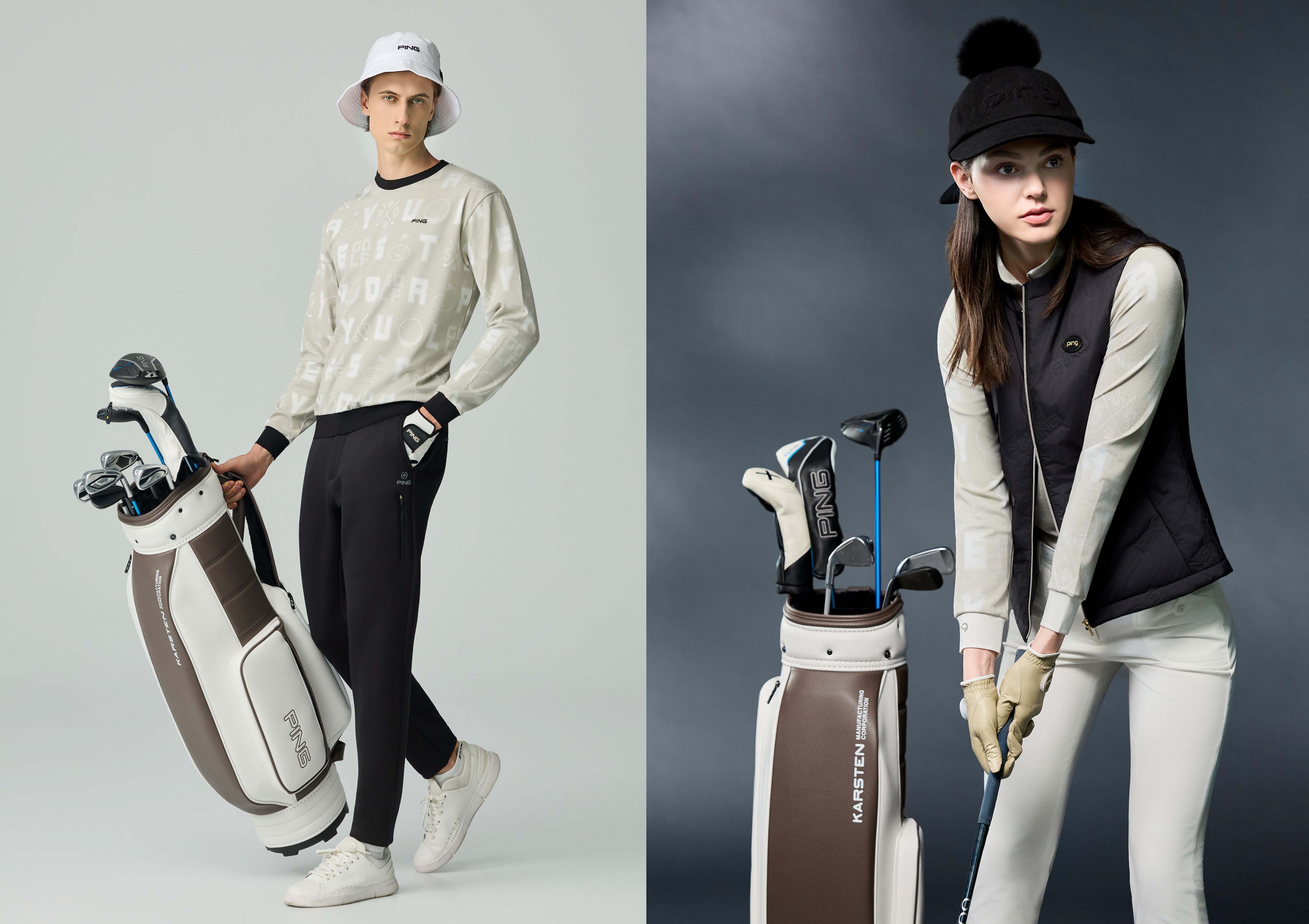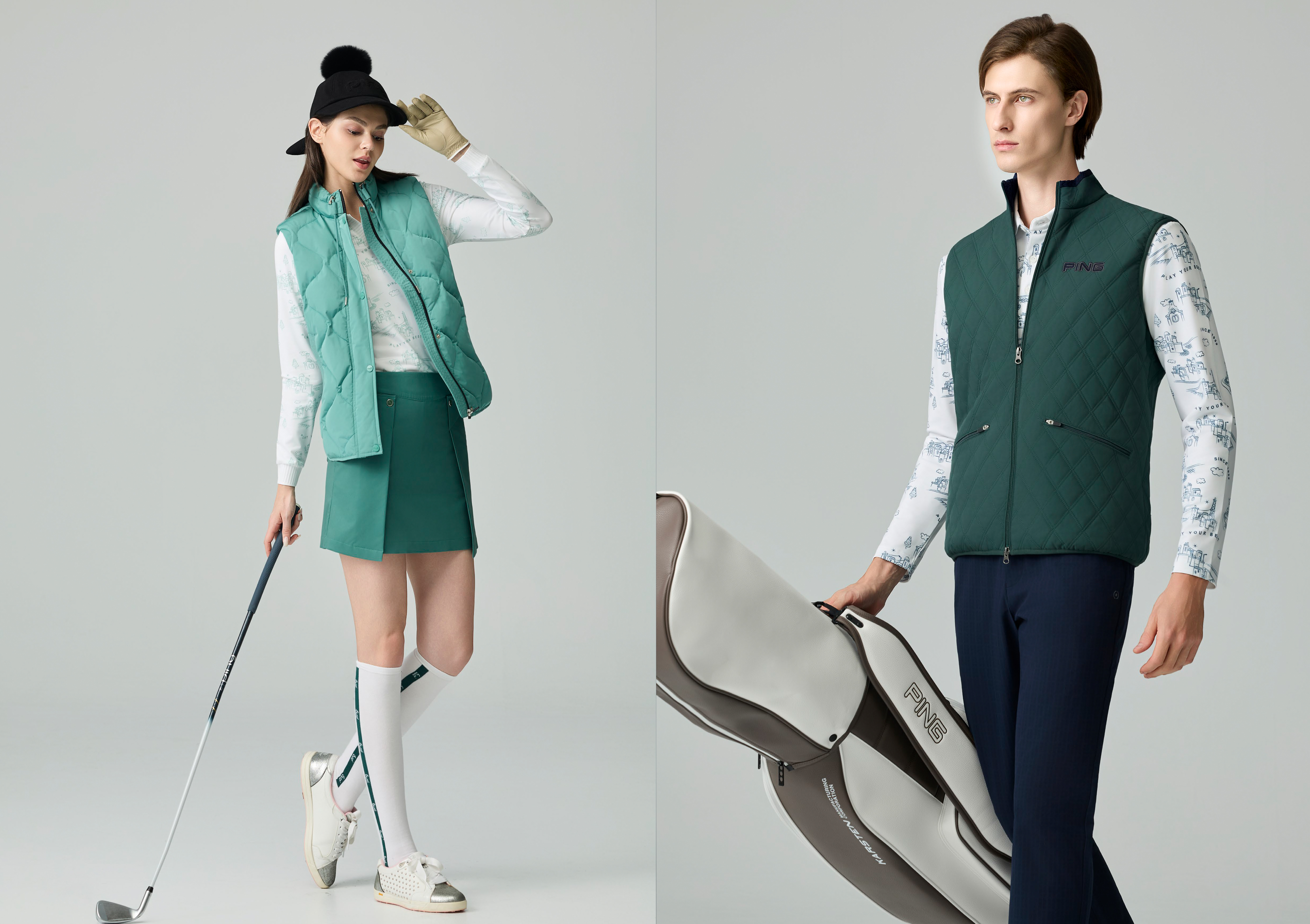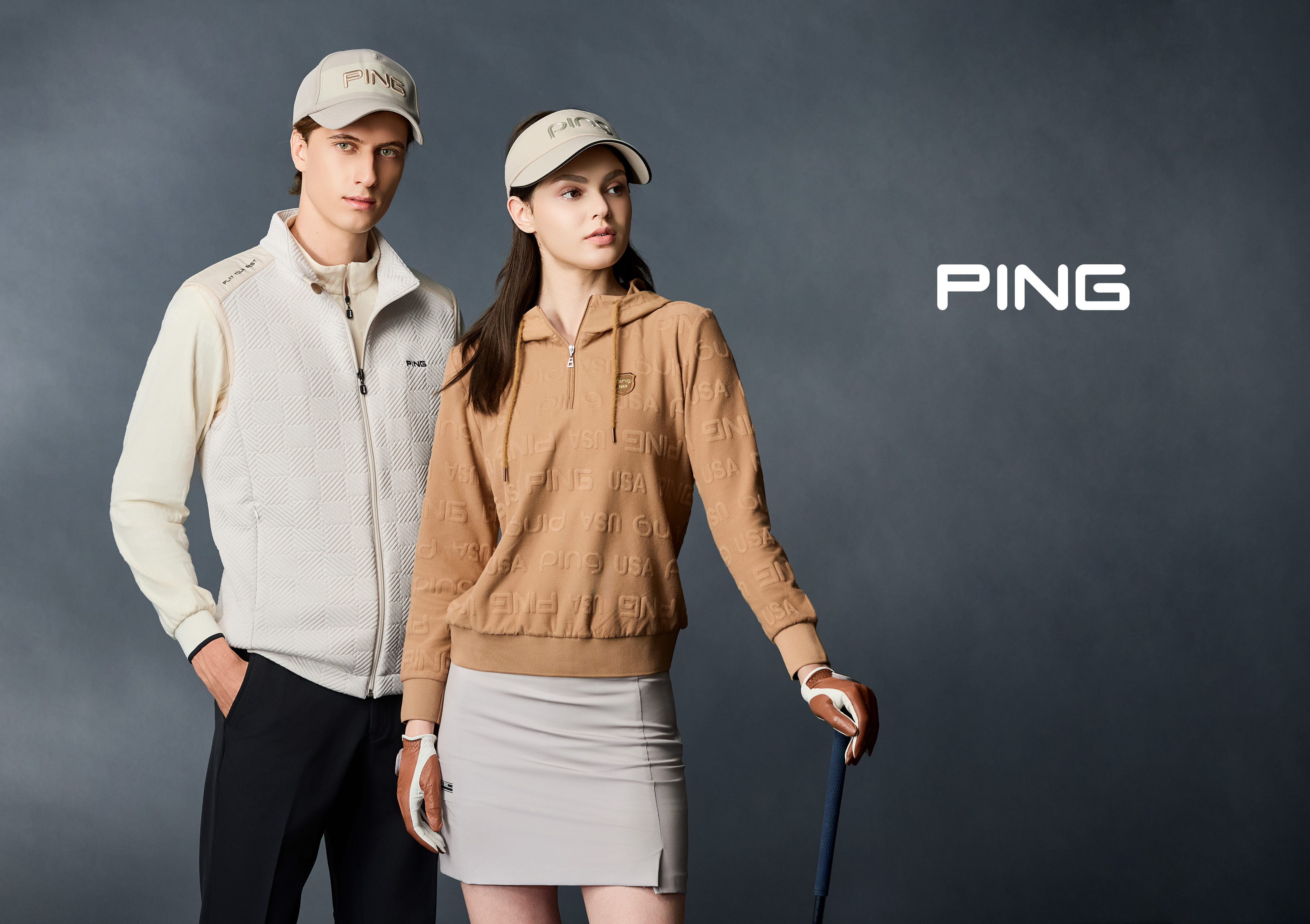 2025 秋冬 PING 全新系列融合個性與趣味,從品牌經典 LOGO 與 ARIZONA 字體延伸設計,翻玩字型結構,打造滿版視覺焦點。結合幾何壓印與人字紋提花面料,展現紋理層次與機能質感;更巧妙融入手繪風格的北歐城市與聖誕元素,增添藝術氣息與節慶氛圍,打破秋冬一貫的沉穩調性。穿上PING秋冬新品,展現自信態度,演繹專屬的奢華運動新美學。